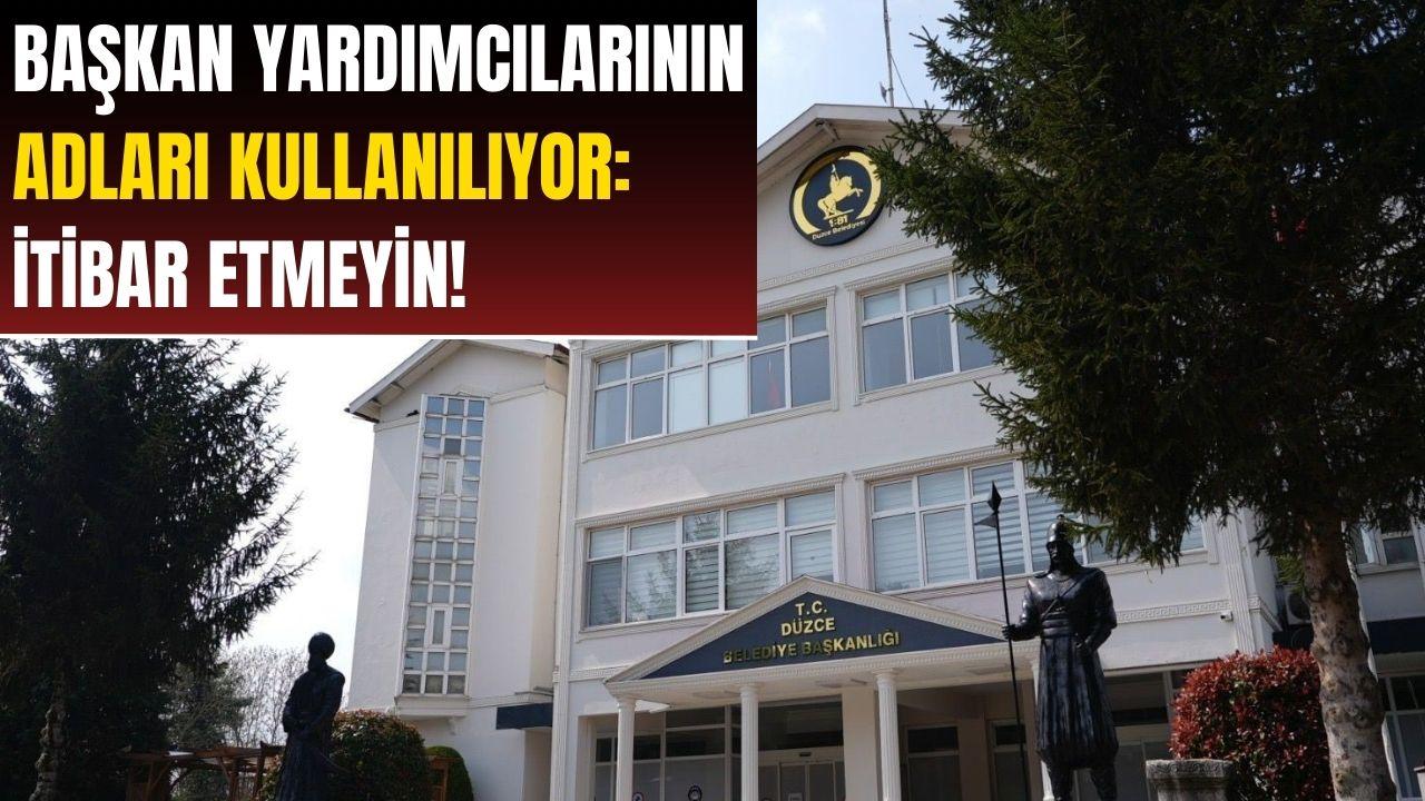 Sosyal medya hesapları üzerinden konuyla ilgili yapılan açıklamada, "Düzce Belediyesinden yapılan açıklamada "Son günlerde Belediye Başkan Yardımcılarımızın adını kullanarak vatandaşlarımızdan yardım parası talep edildiği tespit edilmiştir. Düzce Belediyesi’nin herhangi bir sebeple vatandaşlardan para talep etmesi söz konusu değildir. Vatandaşlarımızın, insanların duygularını sömüren dolandırıcılara karşı dikkatli olmaları önemle rica olunur" ifadelerine yer verildi.