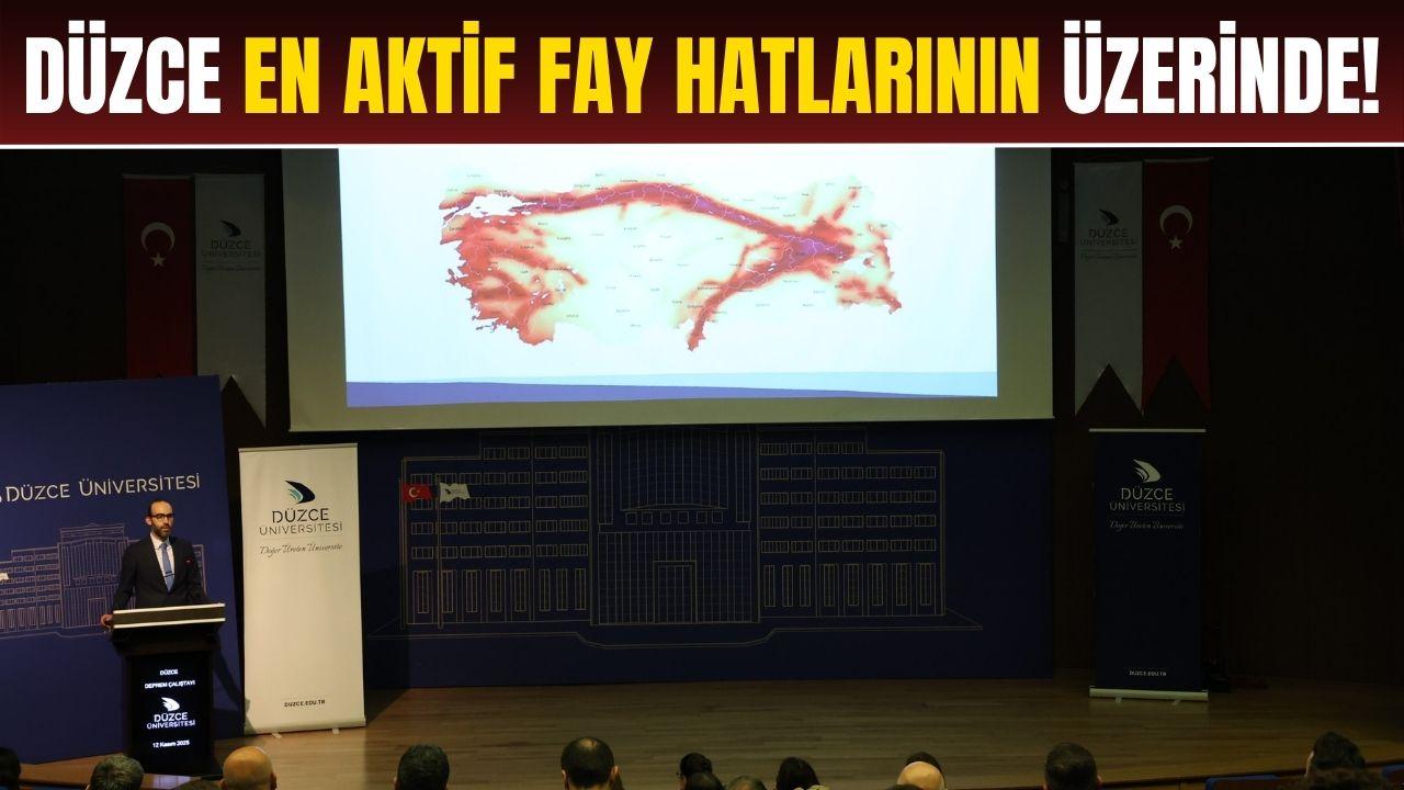 Düzce Üniversitesi’nde düzenlenen deprem çalıştayında konuşan Deprem Araştırma ve Uygulama Merkezi Müdürü Prof. Dr. Mehmet Emin Arslan Düzce’nin Kuzey Anadolu Fay Hattı’nın en aktif kollarından biri üzerinde yer aldığına dikkat çekti.