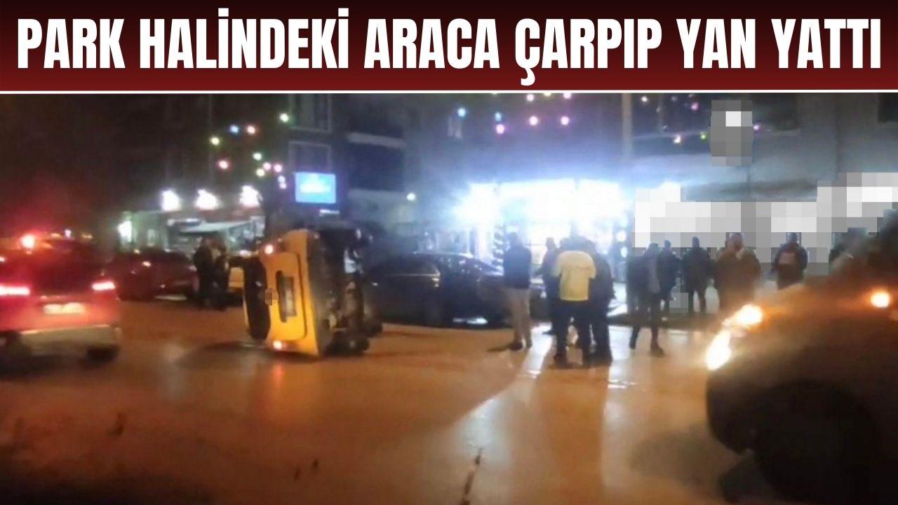 Hürriyet Caddesi üzerinde önüne çıkan kediye çarpmamak için sürücünün manevra yaptığı taksi, park halindeki otomobile çarparak yan yattı.