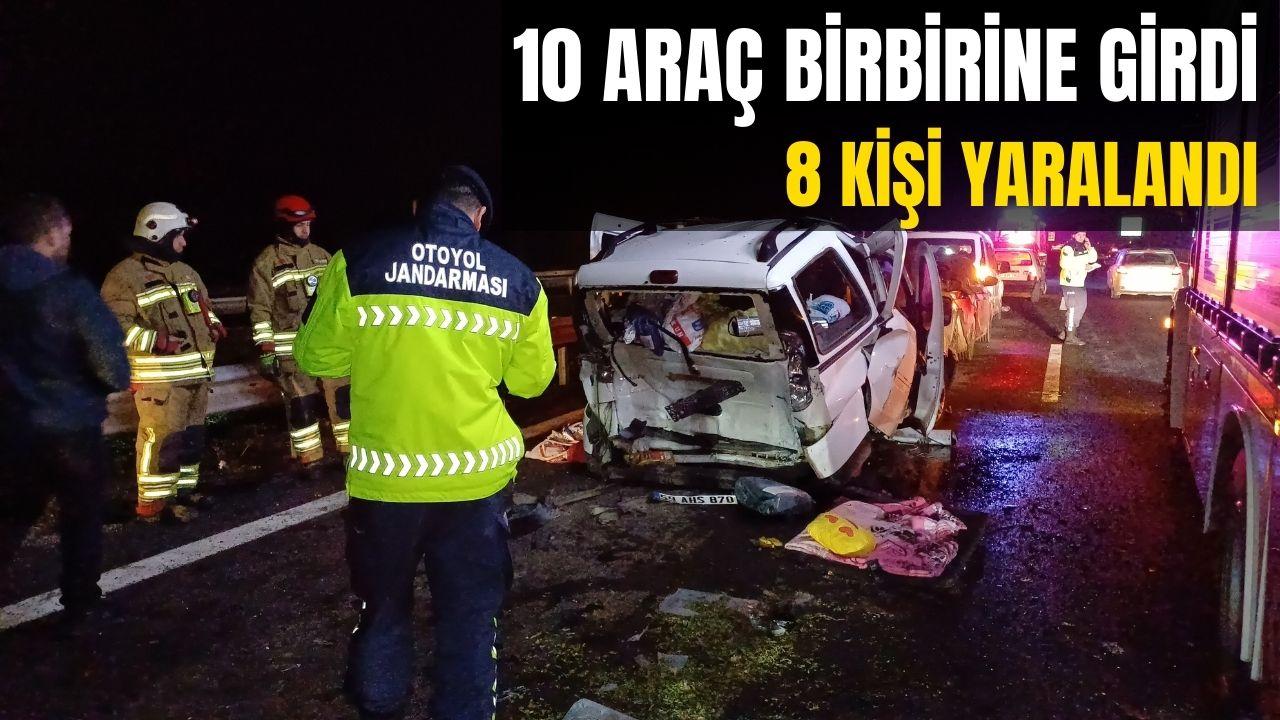 Anadolu Otoyolu Düzce kesiminde haftasonu yaşanan trafik yoğunluğu kazaları da beraberinde getirdi. Otoyolda 10 aracın karıştığı iki ayrı zincirleme kazada 8 kişi yaralandı.