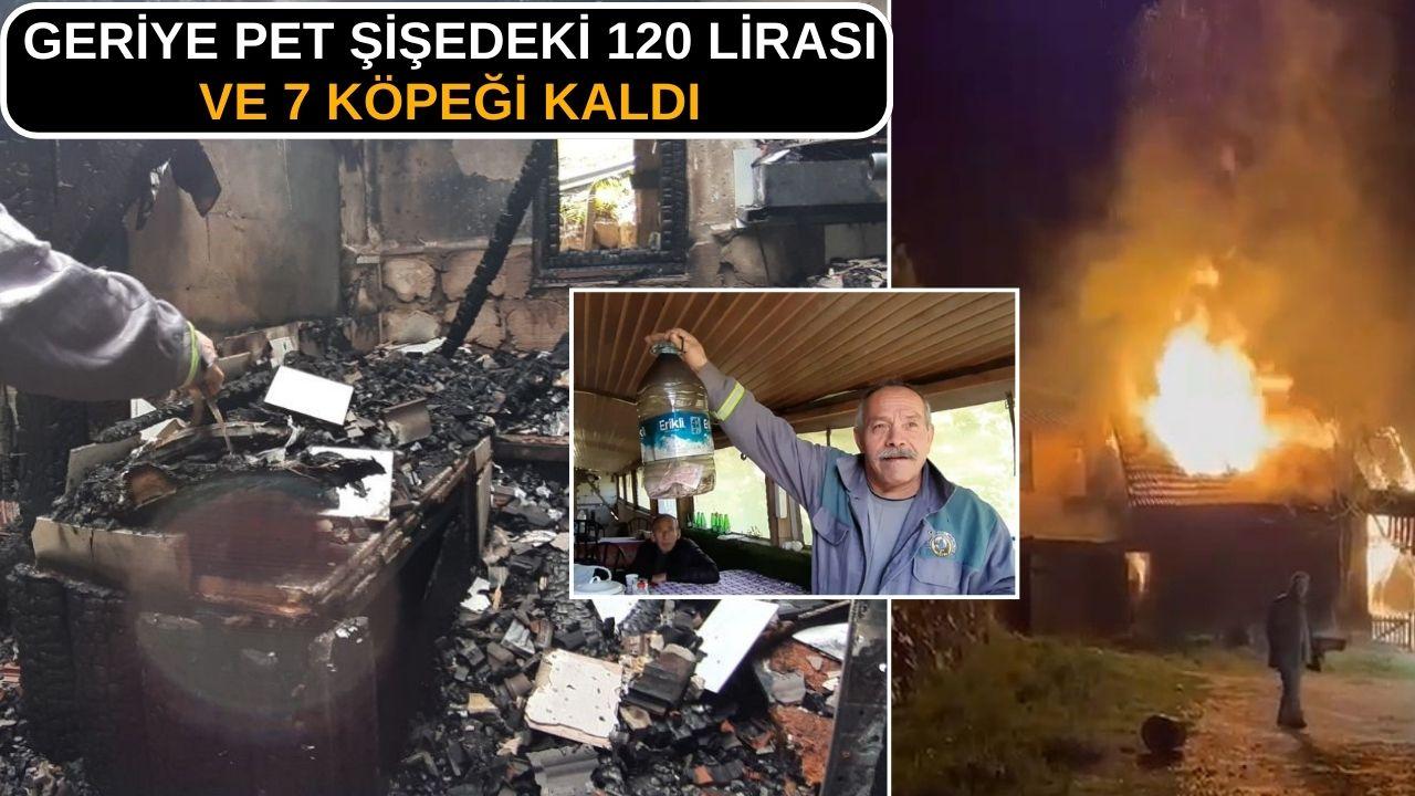 Bolu'nun Göynük ilçesinde iki katlı ahşap evde çıkan yangında ev ve eşyalar kullanılamaz hale gelirken, kumbara olarak kullanılan pet şişedeki 120 TL zarar görmedi. Maddi kayıp yaşayan ev sahibinin tek tesellisi ise, "Onlar benim dünyam" dediği 7 köpeğin yangından etkilenmemesi oldu.